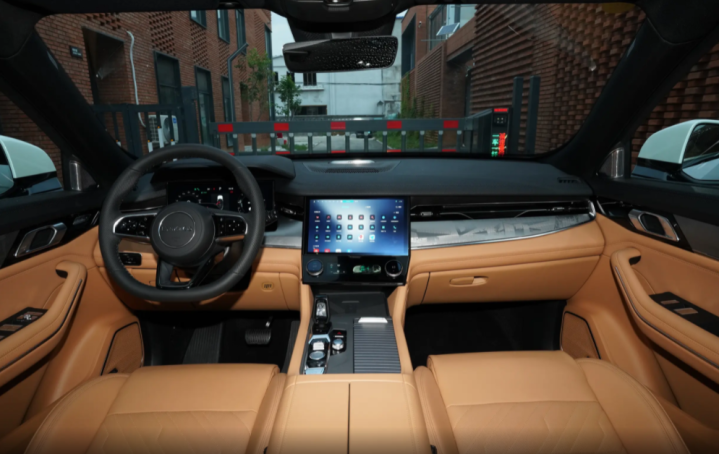 座舱设计上,领克09的用料也是颇为讲究,这算得上是该车的第二个优点了,其车内采用了大量的软质材料包裹,而且还是灰色的装饰板,配合贯穿式的通风槽设计,让车内的精致程度着实不差,而且在显示屏幕方面,领克09也是采用了12.3英寸的数字仪表,12英寸的中控屏幕,6英寸的空调控制屏幕等等,这三块显示屏幕让其车内的科技质感更加的浓郁,而且中控屏幕在操作起来的流畅程度上表现也算不错,只是触控的空调面板,在实用性的表现上差一些,在一人驾车的时候,远不如AI语音来的更直接方便。